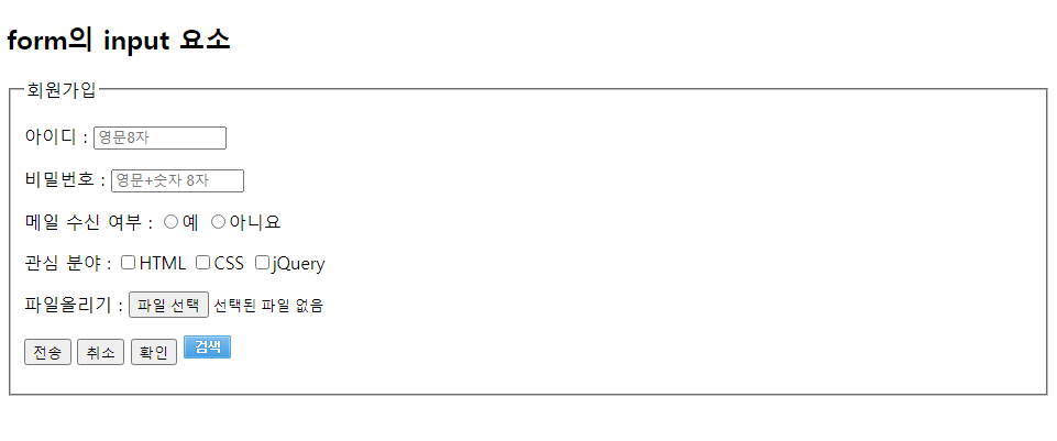 <p><input type="submit" value="전송"> <input type="reset" value="취소"></p>