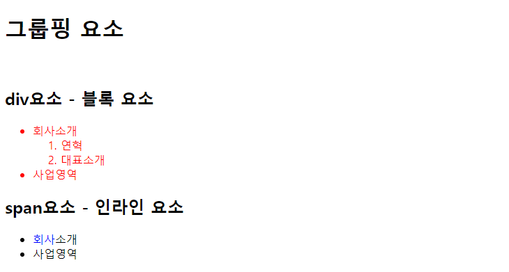 <h1>그룹핑 요소</h1>