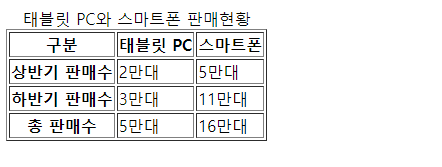 <caption>태블릿 PC와 스마트폰 판매현황</caption>